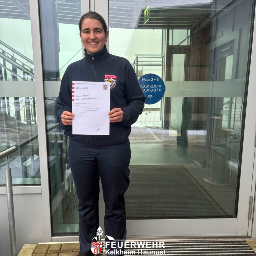 Heute hat Katharina (Mitte) den einwöchigen Lehrgang „Ausbilder in der Feuerwehr“ an der Hessischen Landesfeuerwehrschule in Marburg bestanden!