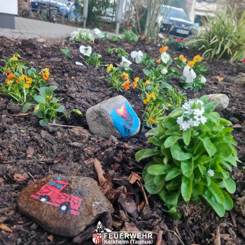 Gemeinsam wurde eine buntgemischte Auswahl an Pflanzen und Blumen eingepflanzt. Verschönerten wurde das Beet mit handbemalten Steinen der Kinder.