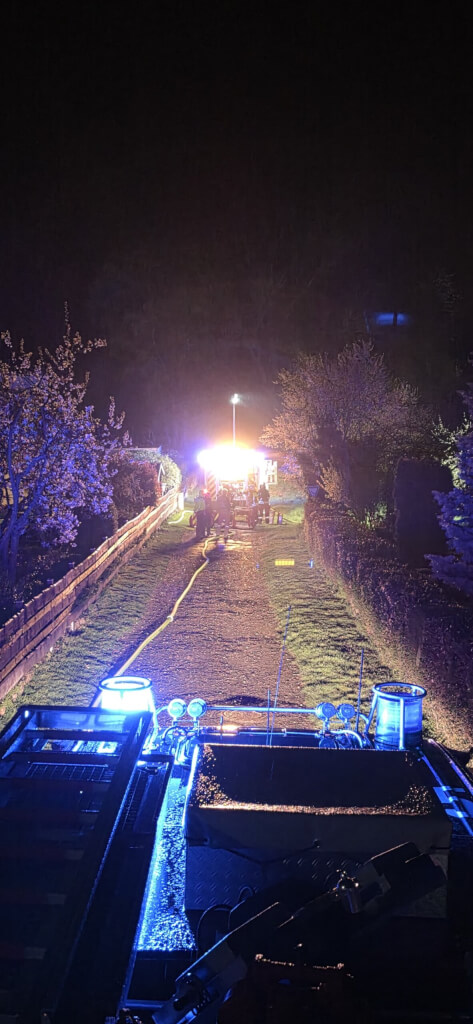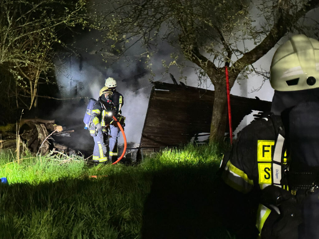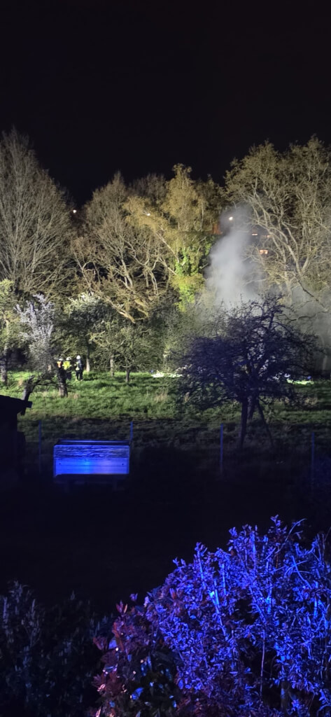 Die Wehren Mitte, Münster und Hornau wurden am gestrigen Abend zu einer brennenden Gartenhütte in den Gimbacher Weg nach Mitte alarmiert. Vor Ort stand eine Gartenhütte in Vollbrand und schlug bereits auf umliegende Bäume über. Sofort begangen wir mit den Löschmaßnahmen und konnten den Brand zügig löschen. Einsatzende nach knapp 1,5 Studnen.