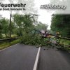Durch den Sturm ist ein teil einer Werbetafel in ca. 15m Höhe abgefallen. Weitere Teile drohten ebenfalls abzustürzen. Über die Drehleiter wurden diese teile windsicher gemacht.